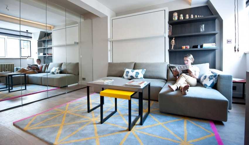 Благодаря трансформирующейся мебели, удается оптимально разгрузить гостиную и придать ей больше функциональности. Комплексная стенка-трансформер, объединенная с кроватью или диваном, станет идеальным решением для маленького зала или однокомнатной квартиры.