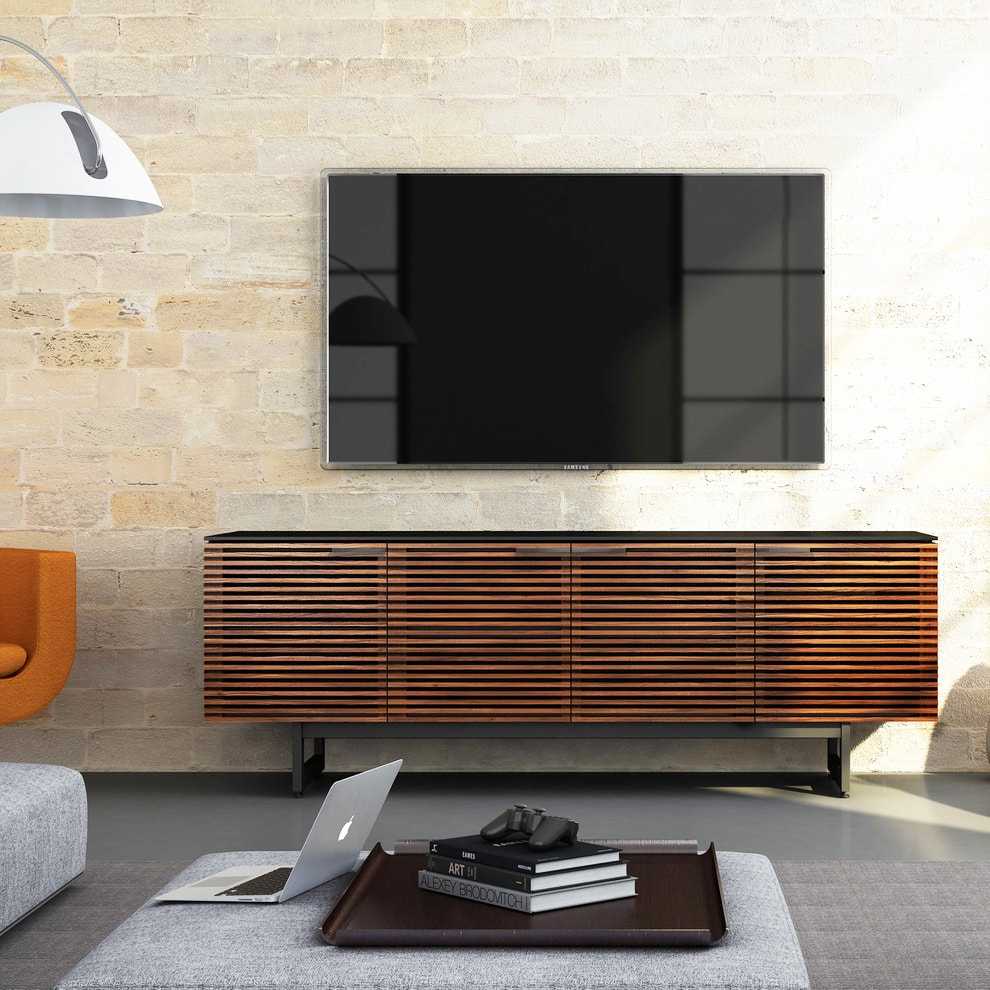 Тумбы стандарт, мини, средние по размерам и габаритные варианты – в продаже можно найти решение для телевизора любого размера и любой площади комнаты. Для плазменных ТВ с диагональю до 55 дюймов подойдут стандартные тумбы. Под большой ЖК телевизор нужно подбирать более габаритную мебель с широкой столешницей или отсеками для аппаратуры. Маленькая, низкая, но при этом широкая тумбочка из натуральных, экологически безопасных материалов подойдет для установки в детской комнате.
