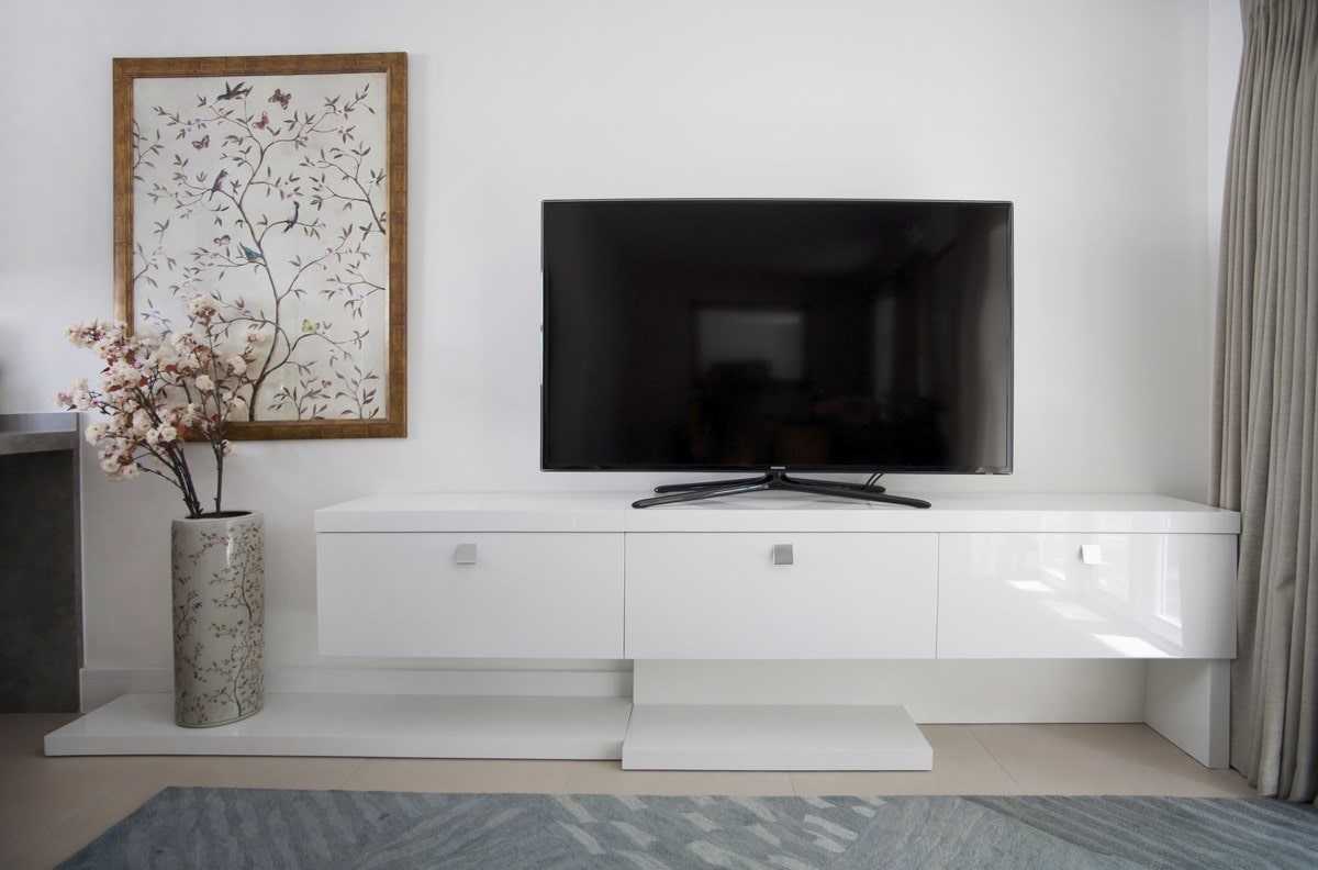 Высота расположения телевизора должна быть такой, чтобы не пришлось задирать голову или сильно опускать ее. Если вы привыкли смотреть ТВ, сидя на диване или в кресле, то подойдут тумбы высотой 50-60 см, а если вам комфортнее смотреть фильмы и передачи на полу, то можно взять тумбу высотой 40 см. Особняком стоят тумбы-стойки. Высота горизонтальной поверхности может быть любой – тут главное, чтобы кронштейны располагались на необходимом уровне.