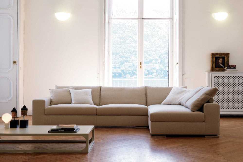- конфигурация и величина диванов не имеет ограничений. В просторной гостиной многоугольная модель длиной до 5 метров сочетается еще с 2–3 изделиями меньшей величины, создавая несколько комфортных зон разного назначения. На фото – варианты диванов и другой итальянской мебели;