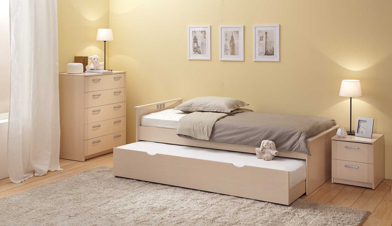 Отдельно стоит отметить, что складные кровати комплектуются качественными матрасами, при желании ортопедическими. Такое спальное место по комфорту в разы превосходит складной диван. Особую актуальность это свойство приобретает для детской комнаты. Ребенок занимает во сне правильное положение, исключая нарушения осанки. Возможность выбора цветовых решений, двухъярусных или двуспальных кроватей делает такую мебель еще более привлекательной.