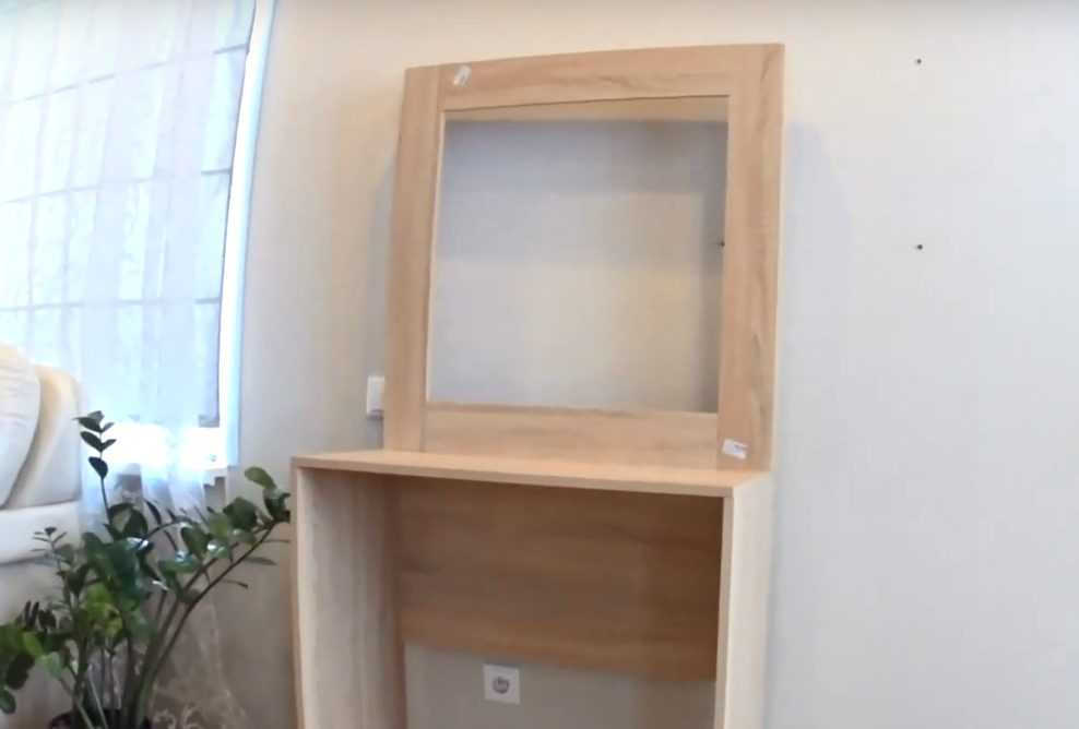 Последний шаг является рекомендуемым, а не обязательным. Прикрепленные к стенам косметические столики признаны более устойчивыми даже при наличии 4 ножек. При выборе места установки заранее продумывается способ запитки подсветки и проверяется удобство размещения стула или пуфика.