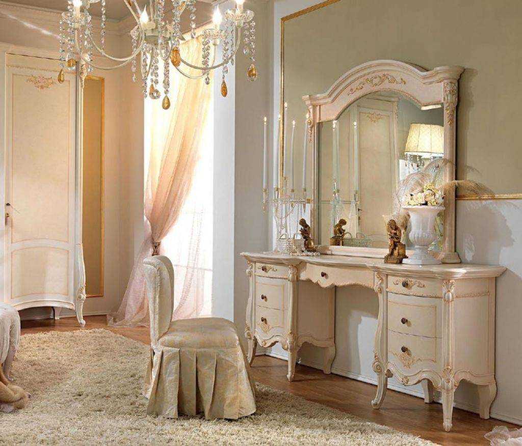 Выбирая туалетный столик, также стоит принять во внимание стилевое оформление помещения, в котором он будет стоять. Так, для спальни, выполненной в классическом стиле, подойдет столик со сдержанным оформлением, стандартной симметричной формы. Такие модели выполняют из дерева и ЛДСП, дополняя декоративными элементами из меди или бронзы, которые смогут украсить его