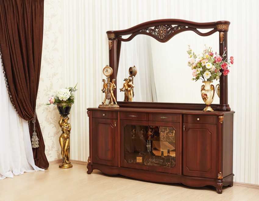 Такие модели выполняют из дерева и ЛДСП, дополняя декоративными элементами из меди или бронзы, которые смогут украсить его