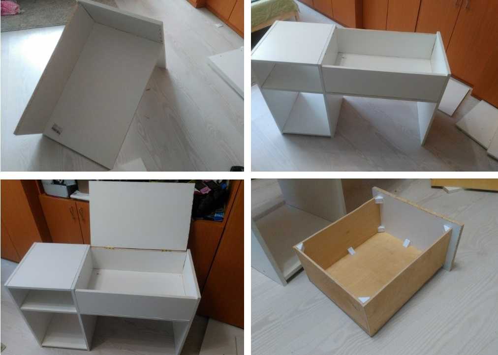 - Отдельно, с помощью конфирматов и мелких саморезов собираются ящики столика.