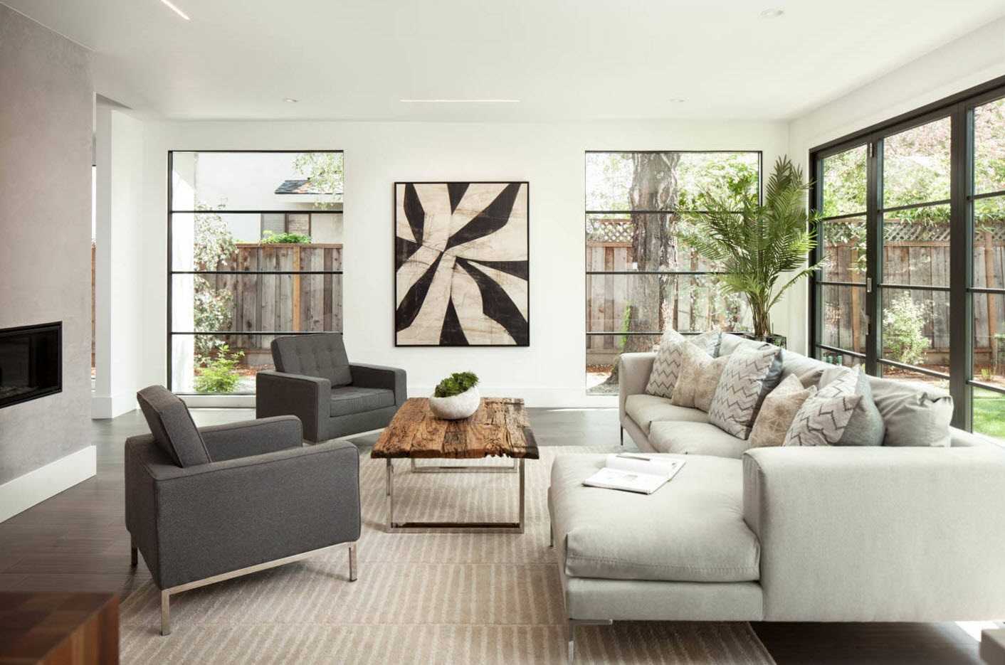 В огромной гостиной маленький диван может “потеряться” и стать незаметным.