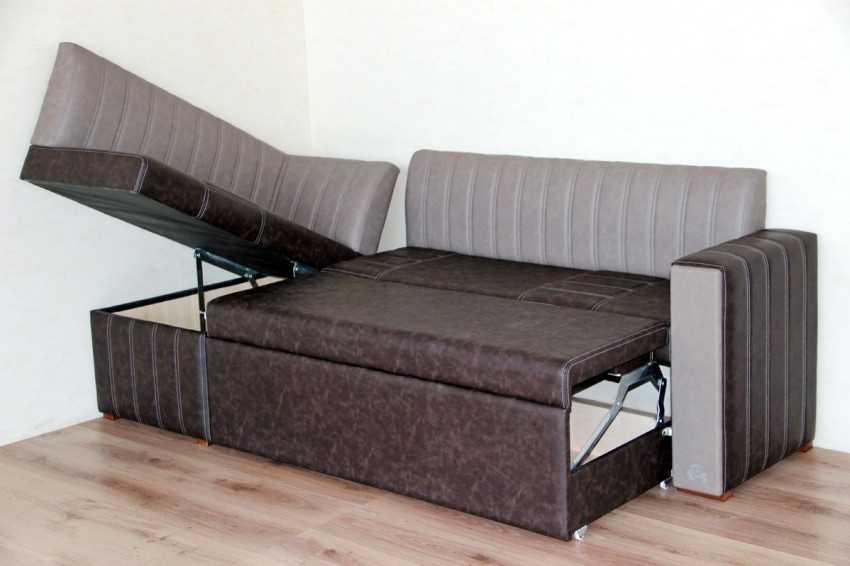 Немаловажным критерием при выборе является механизм, с помощью которого раскладывается диван. В большинстве моделей используется «дельфин». Такой принцип работы не занимает много места и при этом позволяет разработчикам вместить в диван на кухню миниатюрный ящик для хранения постельных принадлежностей.
