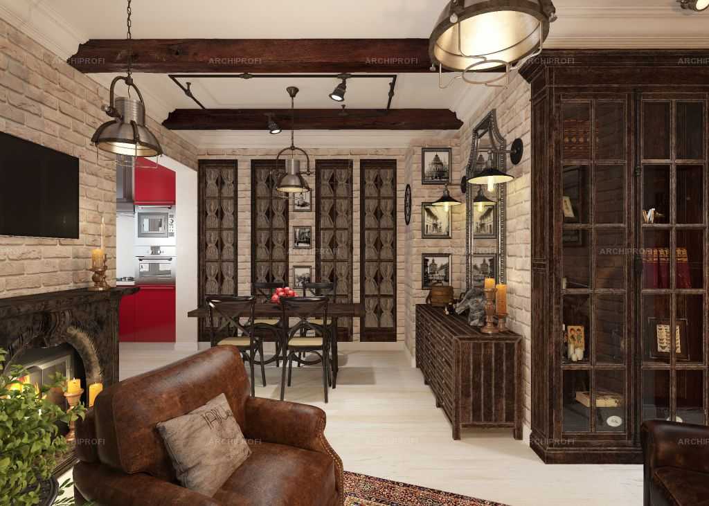 Более мягкий вариант лофта, более одухотворённый. Мебель слегка состарена в стиле винтаж. Выглядит возвышенно-привлекательно.