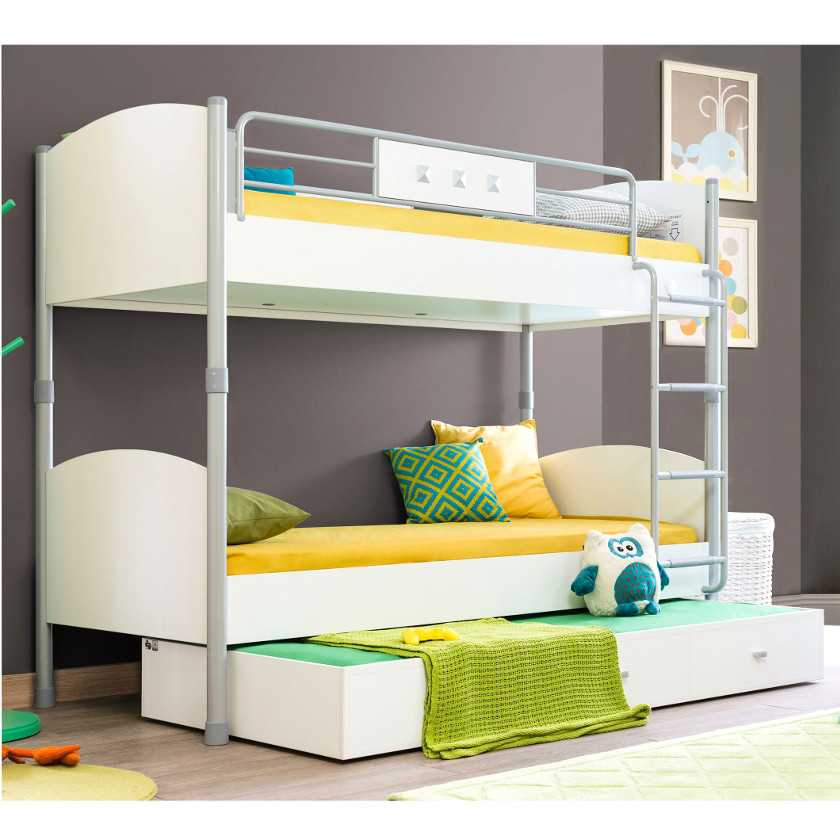 Данные модели предназначены соответственно для троих детей. Мебель, вместо ящика для постельного белья, имеет дополнительный матрас, который будет располагаться в самом низу.