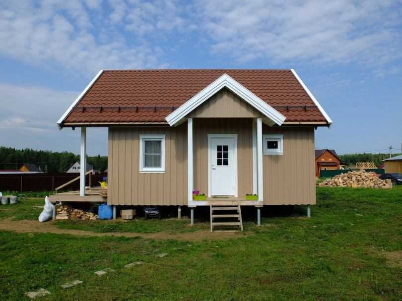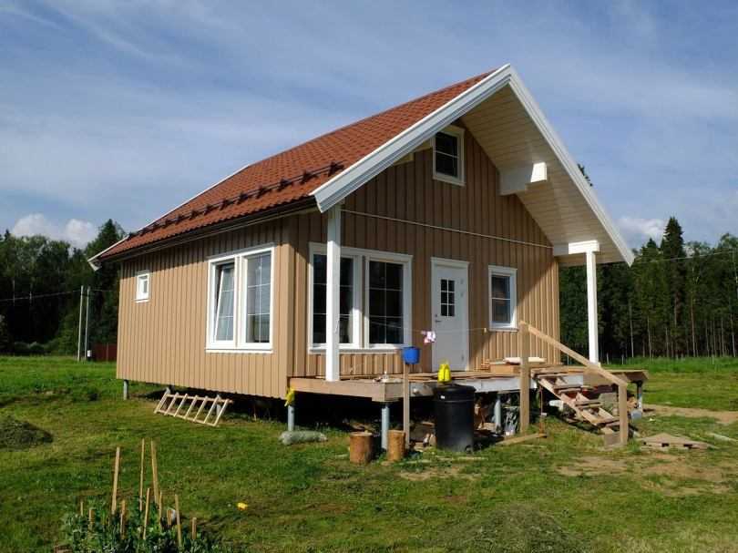 Каркасный вариант подходит для небольших и простых, в смысле архитектурных решений, домов. Каркасные элементы легко смонтировать, поэтому на возведение дачного домика у вас уйдет минимум времени. Отечественные компании производят каркасы из дерева и металла, готовые или в виде разборной конструкции. А стены таких конструкций делают из ПВХ, ДСП и утеплителя. Таким образом, при минимальных финансовых и временных затратах вы получите мини-дом для полноценного отдыха на лоне природы.
