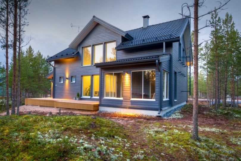 Деревянный дом – идеальный выбор для северных регионов страны, ведь этот материал отлично сохраняет тепло, поэтому вам даже не понадобится дополнительное возведение камина. Единственным недостатком можно назвать то, что при возведении экодома придётся ждать полгода из-за усадки сруба, а уже потом можно приступать к отделочным работам.