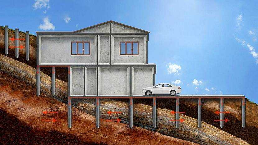 Дом на склоне с цокольным этажом и террасой является популярным вариантом обустройства жилья. Фундамент и террасы служат основополагающей частью постройки, они распределяют давление на землю и препятствуют смещению грунта. Чтобы защитить их от негативного воздействия природных сил, проводят дополнительные мероприятия, позволяющие сделать склон крепким и безопасным. К таким работам относится: