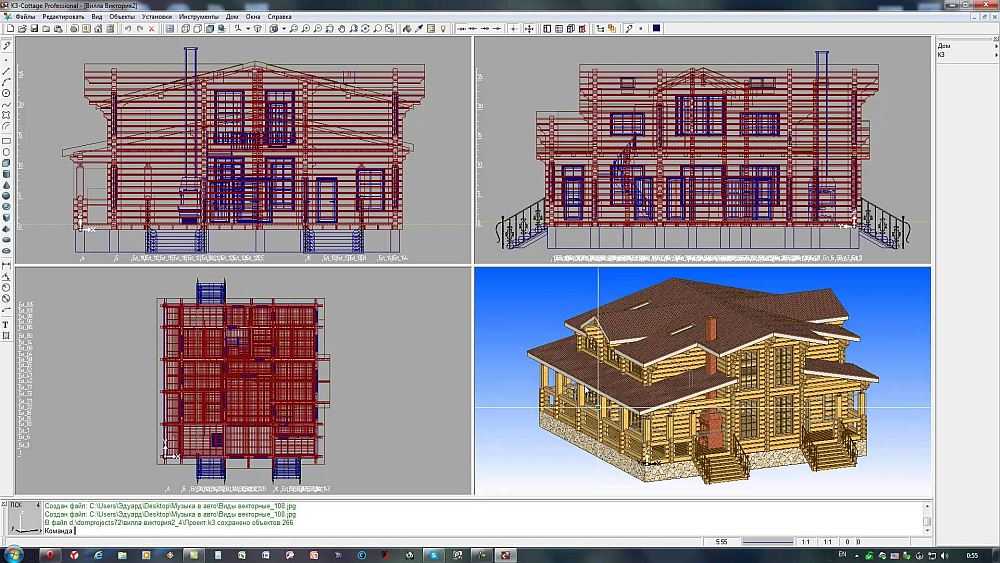 Для каркасных домов есть ряд специализированных программ. Например, К3-Коттедж. Программа платная и довольно дорогая, но служит именно для проектирования срубов бань, домов и других различных деревянных конструкций. Более дешёвые аналоги не обладают всеми возможностями платных программ. Поэтому в них спроектировать можно лишь в общих чертах и без расчёта количества необходимых материалов.