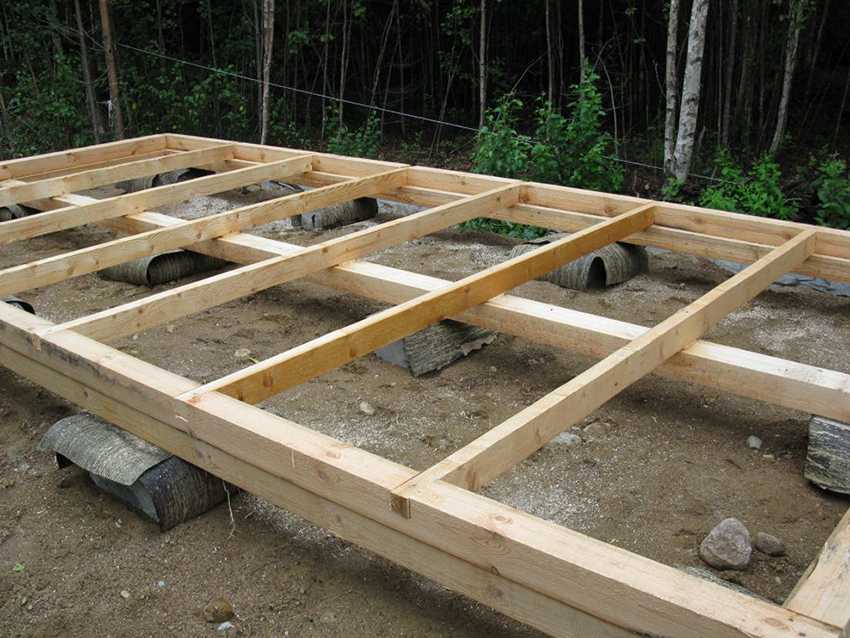 После возведения фундамента, необходимо сконструировать каркас пола, без которого невозможно дальнейшее строительство каркасного дома.