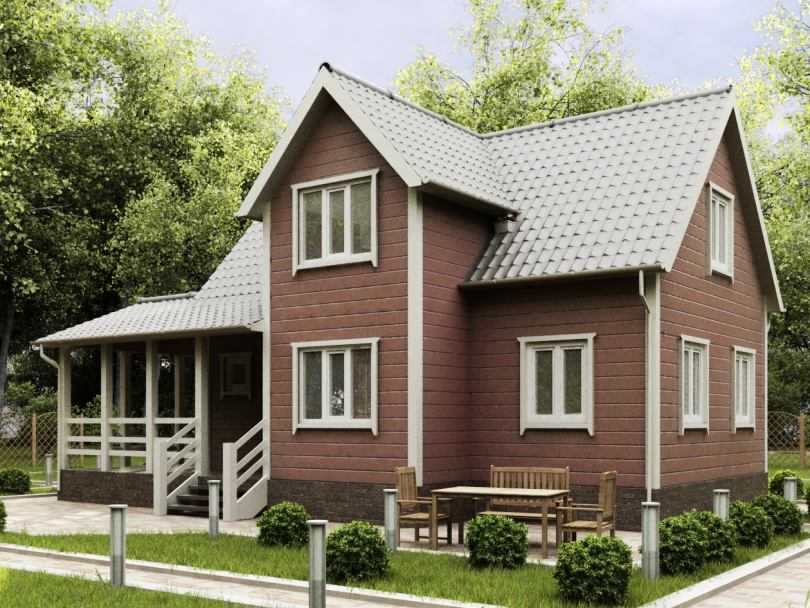 В таких постройках комфортно будет уже 3-4 жильцам. Есть проекты двухэтажных и одноэтажных домов. В верхней части располагается мансарда или чердак, это не считается третьим этажом.