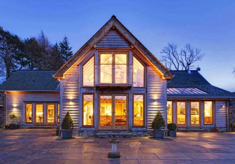 В нашей стране часто оформляют дома в классическом стиле, либо стилизуют их под охотничьи домики. Главная особенность таких дизайнов – использование деревянных панелей либо блок-хауса в отделочных работах, камин в гостиной, классическая деревянная мебель, шкуры животных на полу, приглушенное освещение. В таком доме приятно коротать долгие зимние вечера, греясь у камина, и наблюдать за снегом через пластиковое окно.