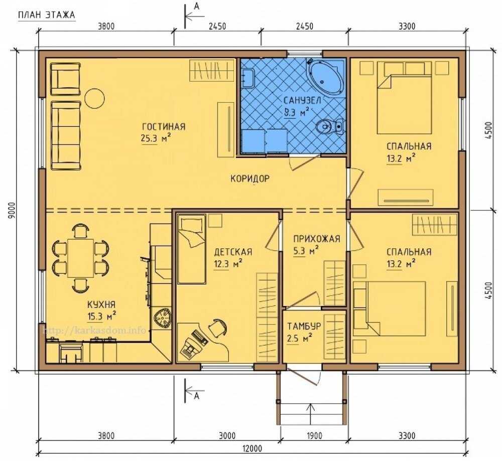Качественные проекты одноэтажных каркасных домов для круглогодичного проживания обязательно должны включать: