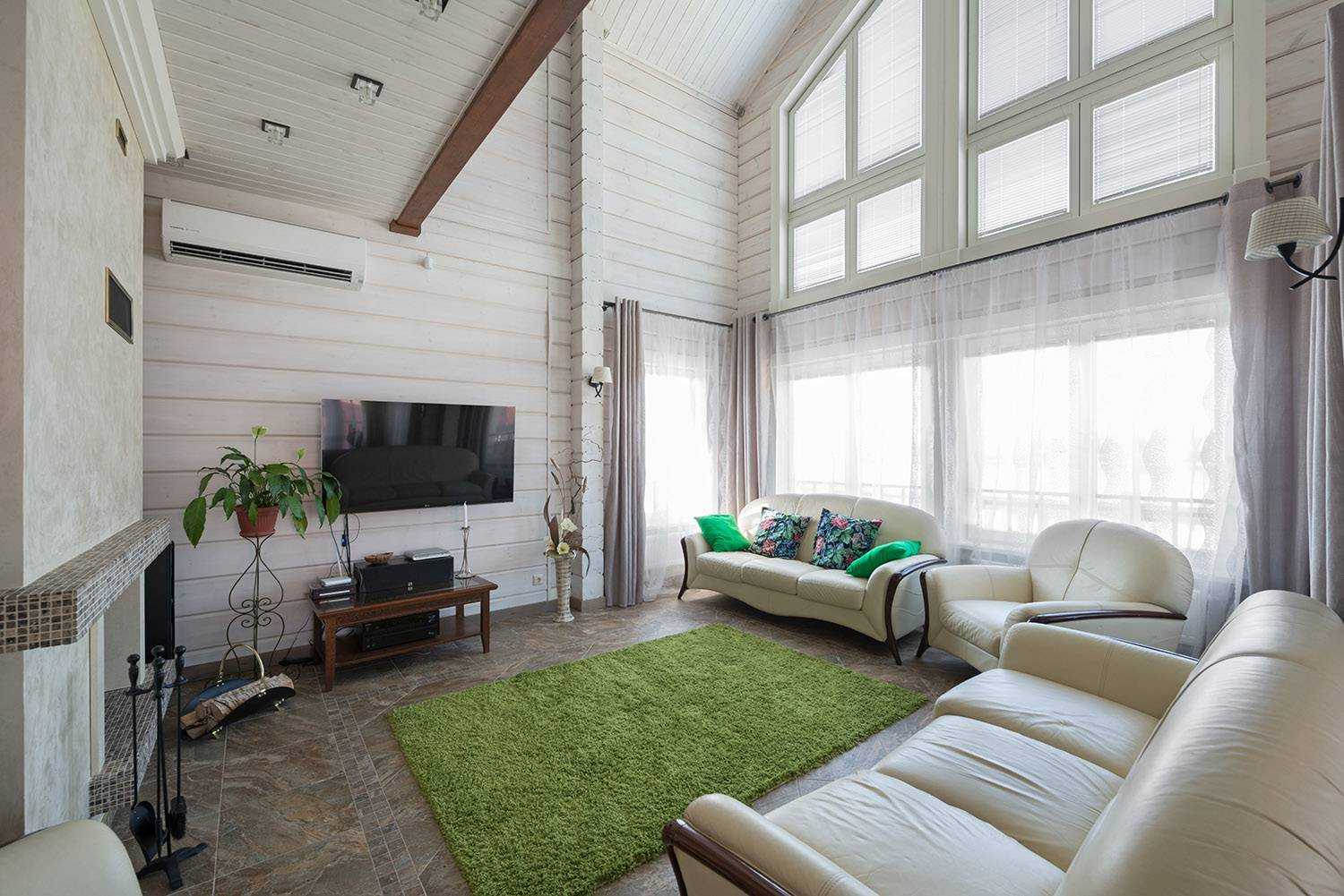 Особенностью планирования помещений с наличием второго света является правильно продуманное отопление гостиной и ее вентиляция. Теплый воздух из комнаты подымается вверх и обогревает фактически нежилое пространство, а обитаемая часть остается холодной. Решить проблему можно, обустроив в помещении дополнительные радиаторы и систему «теплый пол».