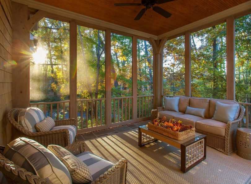 Основные требования к ним – эффективное использование естественного освещения и вентиляции. Как веранда, так и терраса могут быть пристроены к любой части дома из бруса. Во избежание диссонанса, их дизайн должен гармонировать с общим стилевым решением деревянного дома.