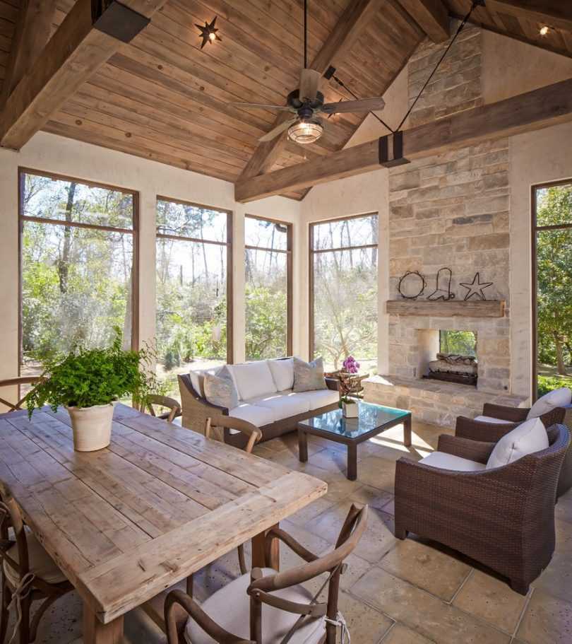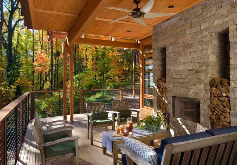 Она постепенно превращается из крыльца в место, где установлено барбекю или мебель для отдыха. В отдельных проектах терраса построена по всему периметру дома.