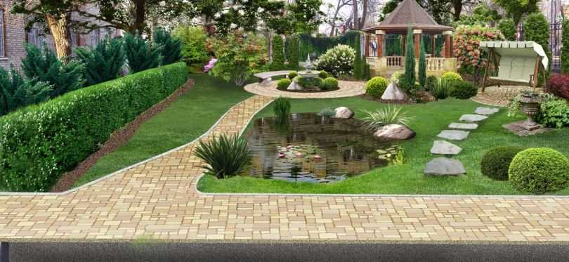Поставив такую задачу, на участке необходимо отвести место дому, бане, гаражу, а все остальное отдать под удовольствия, связанные с пребыванием на свежем воздухе. В зависимости от своей фантазии расположите поблизости от дома бассейн, чуть подальше беседки для застолий, добавьте оригинальный фонтан, альпийские горки, перголы для вьющихся растений. Если вам нравятся искусственные водоемы, то непременно запланируйте пруд. А между всем этим – цветники, лужайки, газоны, детские площадки.