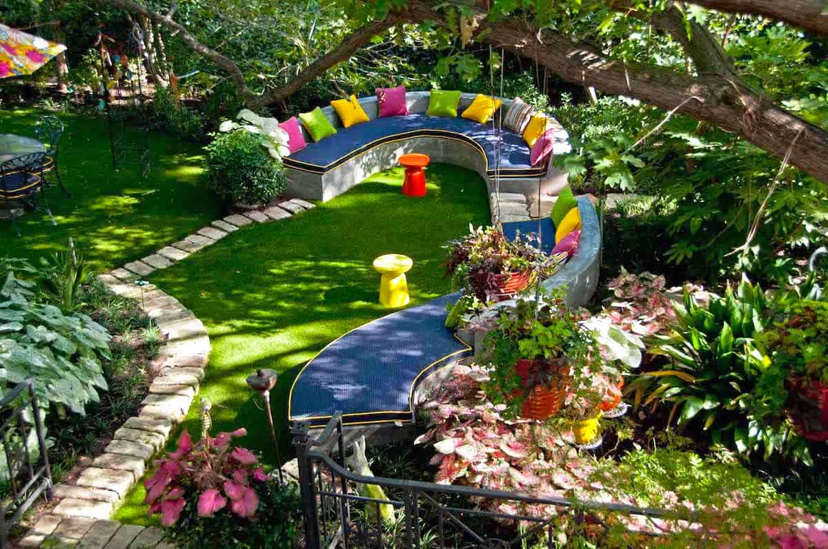 - Извилистые дорожки и тропинки. Чем больше они петляют, тем больше кажется площадь сада.