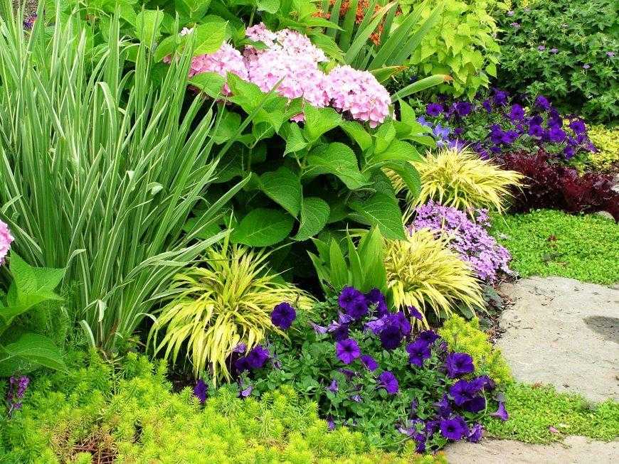 - Нетребовательны к почве и солнечному свету. Их всего разнообразия цветущих растений обязательно найдутся цветы, которые прекрасно будут себя чувствовать на ярком солнце или в ажурной полутени.