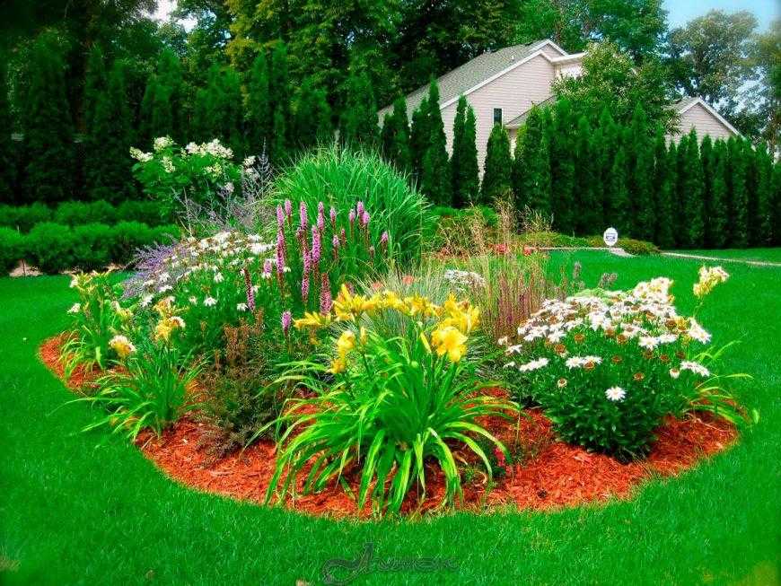 Клумба – яркий элемент сада, поэтому нет смысла разбивать ее в дальнем углу участка или прятать под тенью деревьев. Оптимальным решением для создания многолетней клумбы станет хорошо просматриваемое со всех сторон место.