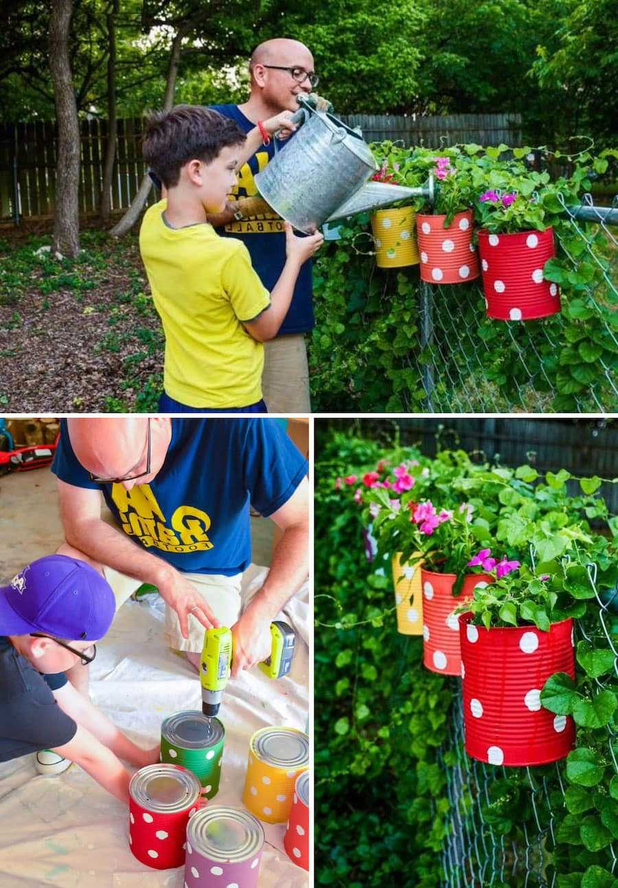 Когда вы делаете цветочные горшки из банок, жестяных, как на фото выше, или пластиковых, очень важно декорировать банки так, чтобы это выглядело аккуратно и продуманно. Лучше сначала потренироваться на совсем ненужных и негодных банках, набить руку и потом декорировать то, из чего вы собираетесь сделать цветочные горшки