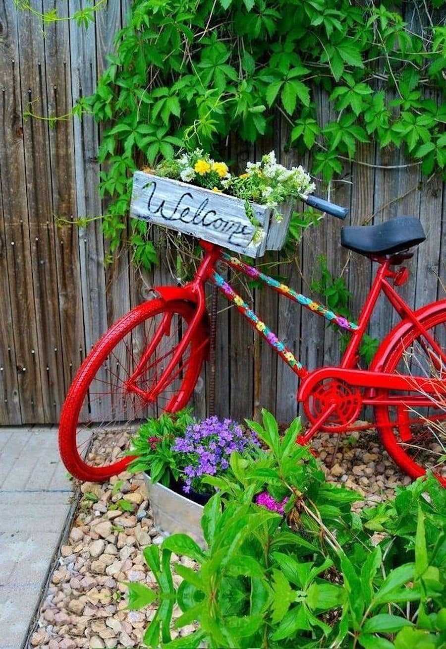 Используют в роли подставки для кашпо старые велосипеды, комоды, кровати. Интересные композиции составляют из различающихся по размерам горшков.