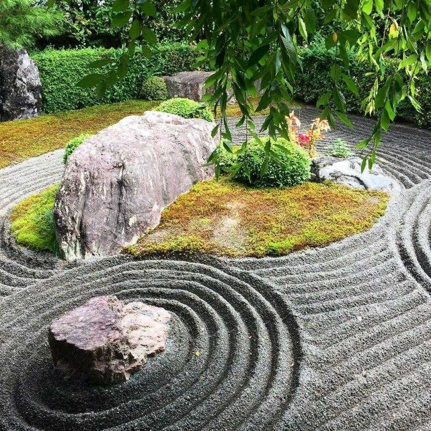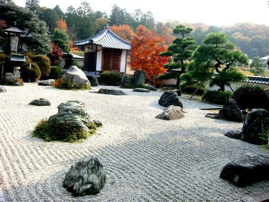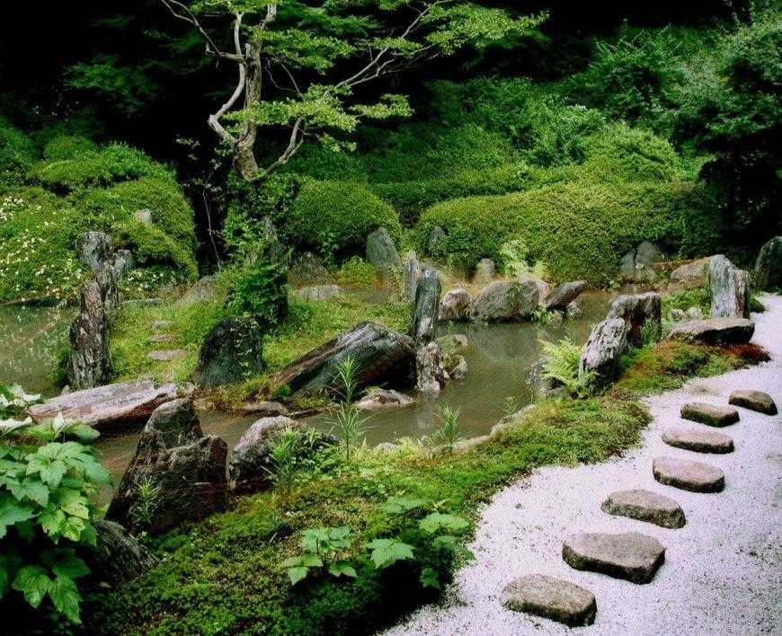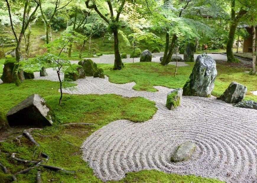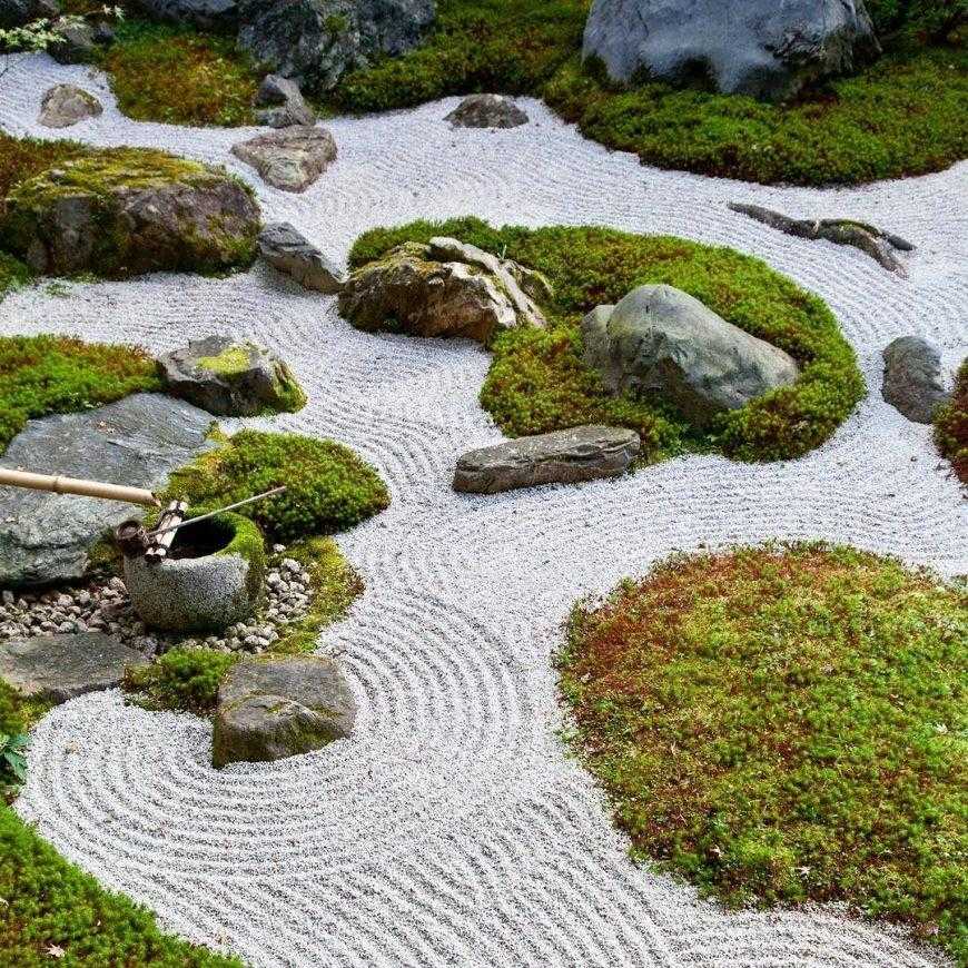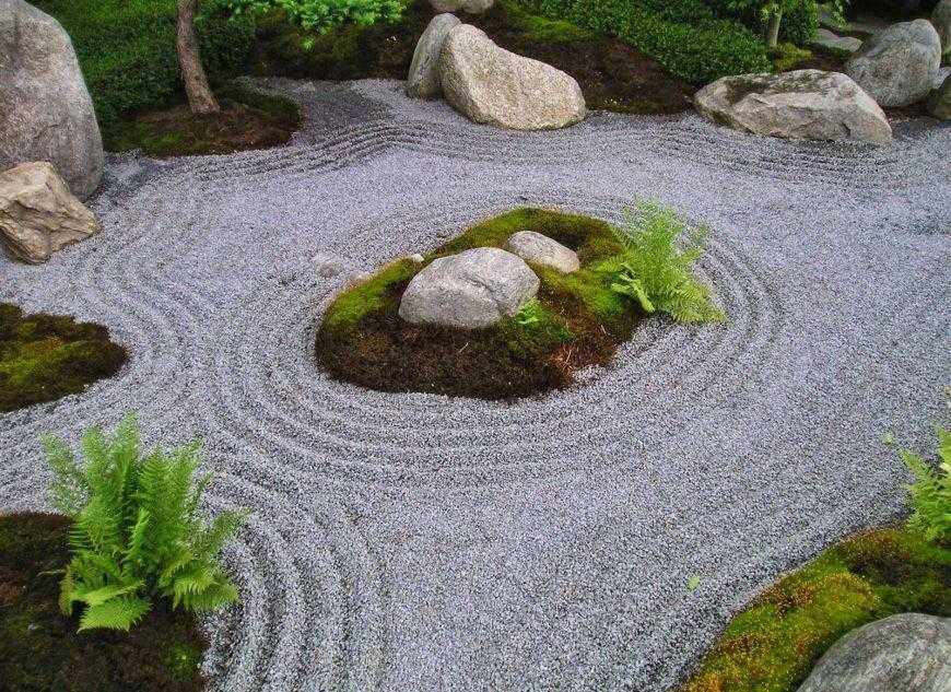 Опираясь на принцип равновесия Инь и Ян, можно создавать гармоничные композиции из камней. Сад камней — это не просто холмик земли с разбросанными по нему камнями. Конструкция должна быть строго выверенной, с хорошим дренажом. Для этого горку делают из смеси суглинка, песчаника и камней, уложенных в виде напластований обнажённой породы. Растения сажают на уступах и в вертикальных расселинах между камнями. Незанятые участки почвы присыпают гравием или маленькими камешками.