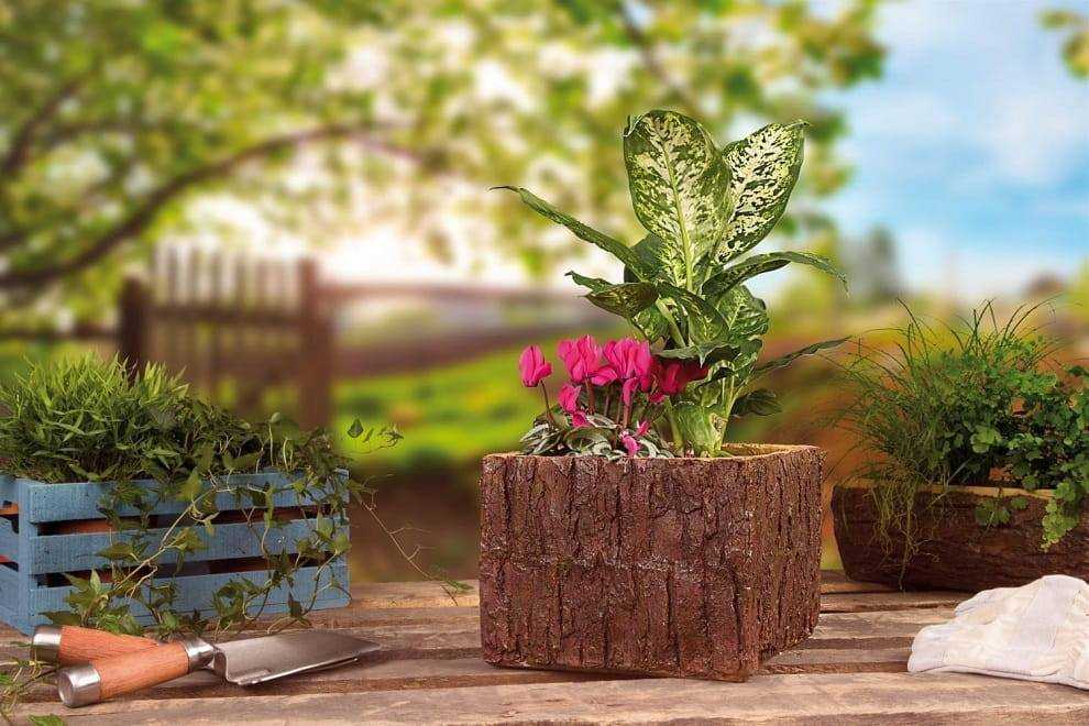 Совет! Оставшиеся после спиливания деревьев пни несложно превратить в стильные вазоны, если в их центре сделать углубление для емкостей с зеленью.