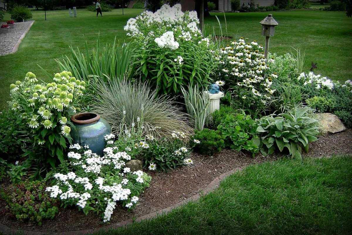 Чтобы найденные идеи ландшафтного дизайна хорошо вписались в пространство участка, стоит всегда обращать внимание на поддержание единой цветовой палитры. Оформить участок можно, используя только холодные оттенки. Это придаст даче нежный облик
