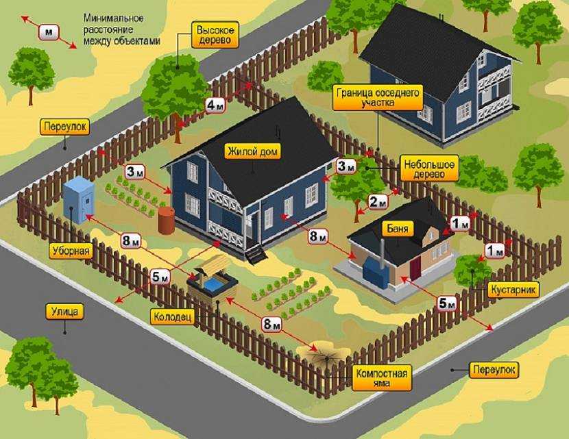 Минимальное расстояние от забора при составлении плана должно быть равно 5 м. Это не благое пожелание, а непосредственное требование устоявшихся правил.