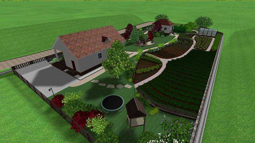 Но правильно распланировать нужно, конечно, и участок на 25 соток. Поскольку его площадь довольно велика, вместо 3 основных зон можно оборудовать сразу 5: