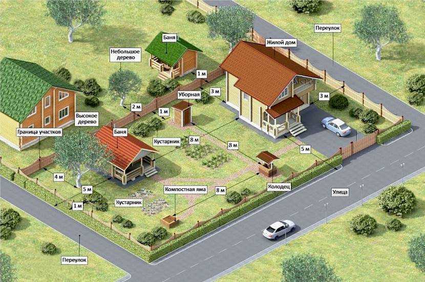 Минимально допустимые отступы от границ участкаИсточник housesdesign.ru