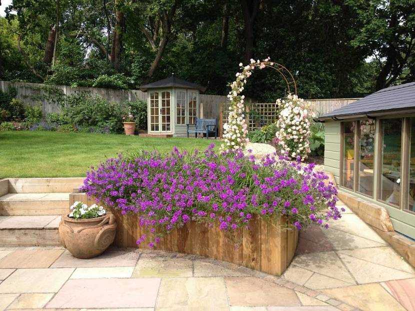 Приподнятая клумба может использоваться и для цветника, и как грядка. С ней проще работать, легче убирать сорняки, можно сделать встроенный автоматический полив. Правда, ее сооружение потребует много времени, сил, чистой земли и дерево (или кирпич) для основы.