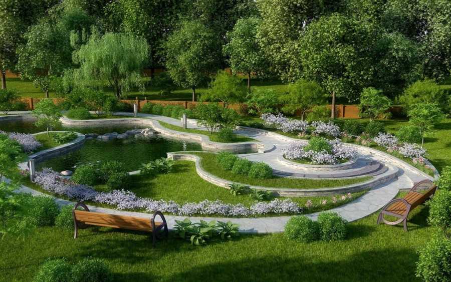 Для начала стоит понять, какой именно участок вы видите: он должен быть симметричным, геометрически правильным или же хаотичным, с преобладанием круглых элементов, множеством дорожек или без них вовсе.