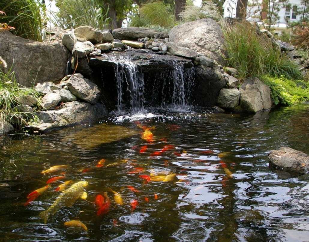 - Уход. Как правило, чем больше размер водоема, тем проще будет его очищать. Нужно обязательно продумать способы ухода за сооружением и находящимися в нем рыбками и растениями.