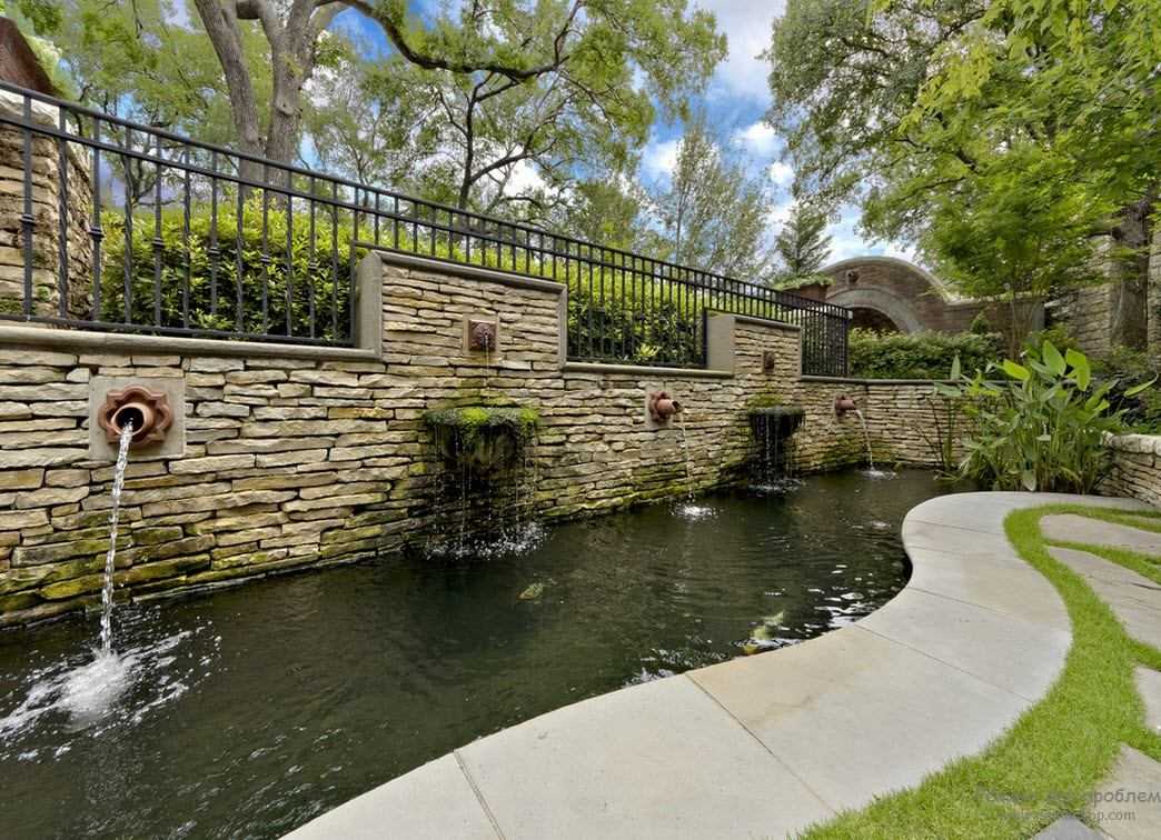 В качестве декора такого пруда очень часто используют фонтаны. Установить их не сложно даже без посторонней помощи. Также стоит отметить небольшие водопады, которые делают пейзаж более оживленным. Но все же для того, чтобы это имело действительно красивый вид, нужно довольно большая территория.