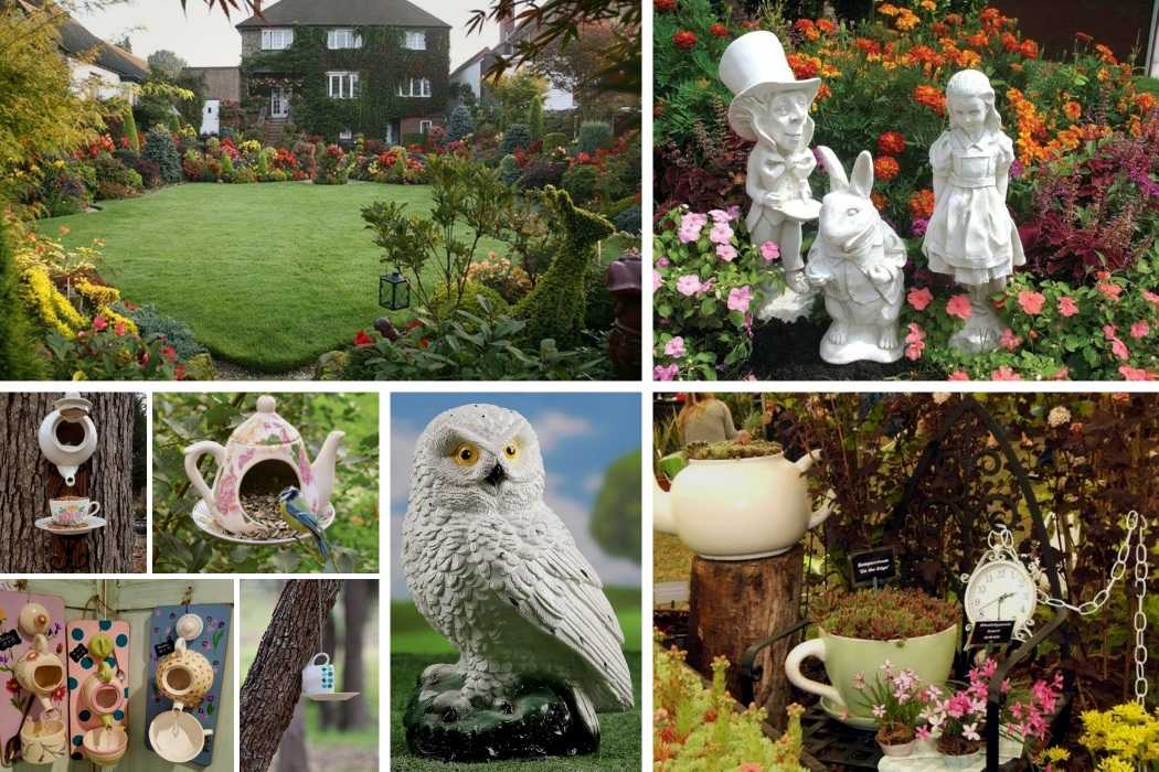В английском оформлении садовые фигурки практически не применяются. Любители всего британского могут украсить клумбу или газон любимыми героями таких английских сказок, как «Приключения Алисы в стране чудес», «Гарри Поттер», «Винни-Пух и все-все-все».