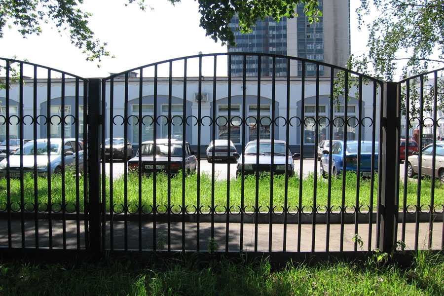 Конструкция из профильных труб отличается лаконичным внешним видом. Она часто используется для ограждения административных зданий и общественных участков.