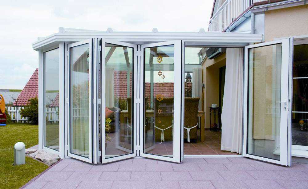 Складные – это двери, которые открываются «гармошкой», модели бывают обычными и утепленными.