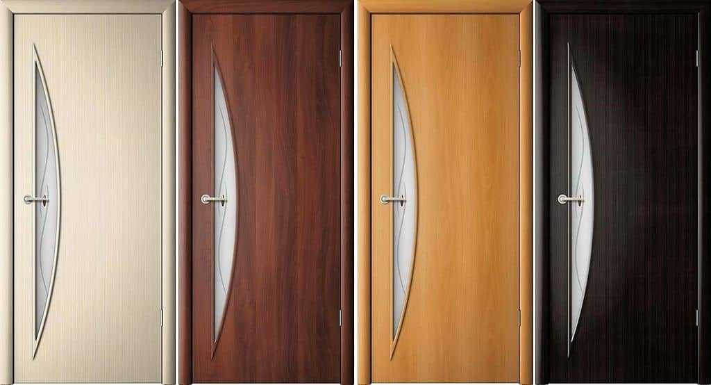 - для бюджетных дверей чаще всего используется древесина хвойных пород, отделанная ламинатом, экошпоном или лаковым покрытием, средняя стоимость – 1,5-4 тыс. рублей.