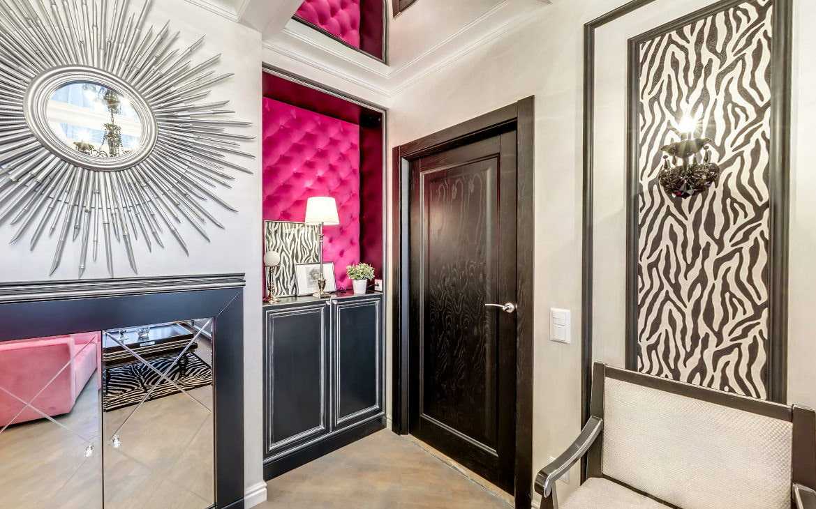 - Если хочется замаскировать проход в другую комнату, дверь можно скрыть зеркалом, но нужна педальная фурнитура, чтобы открывать их.