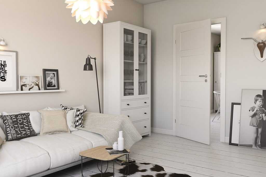 Для светлой гостиной дверь выбирается лишь с намеком на серый тон. Она украсит и скандинавский дизайн, и традиционную классику.