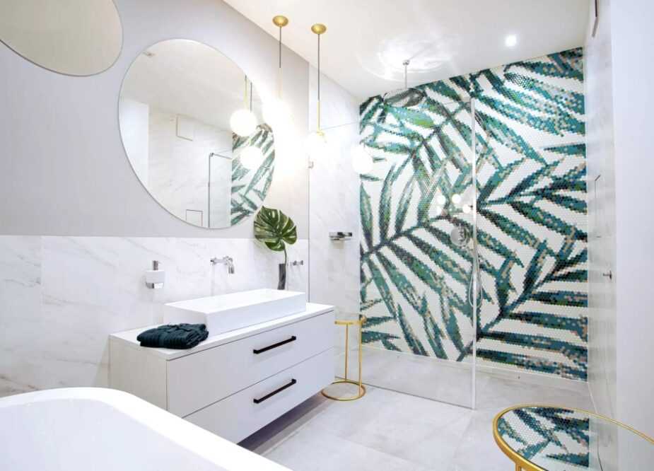 - Стекло универсально с точки зрения внешнего вида и может гармонично смотреться в любом стилевом решении с любым материалом: плиткой, натуральным камнем, металлом или деревом.