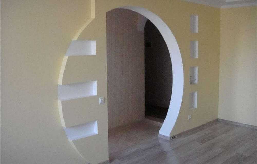 Более популярно сооружение арочных конструктов. Для этого не обязательно расширять существующий в стене проем, в последние годы активно используется идея создания фальш-арок. В таком случае в прямоугольный пролет устанавливают угловые элементы из полиуретана или гипсокартона со скругленными сторонами, и в результате получается полноценная арка при гораздо меньших затратах средств и труда. Однако такой способ подходит далеко не для всех жилищ: необходимо, чтобы проем обладал достаточной высотой.