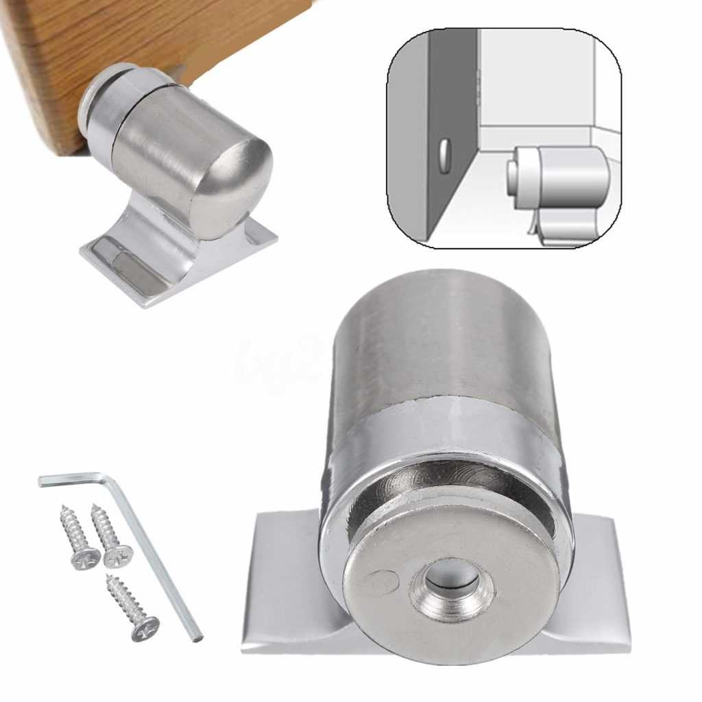 В отдельный вид можно выделить магнитный стопор, который может быть изготовлен различной формы. Магнитный ограничитель является более совершенной моделью, так как позволяет не только ограничить открывание двери, но и удерживать полотно в открытом положении. Для этого на место соприкосновения на устройстве устанавливается магнит, а на двери – металлическая пластина соответствующего размера.