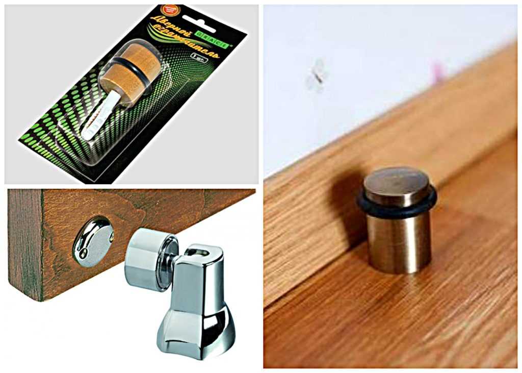 Такие разновидности ограничителей устанавливают для фиксации створки в закрытом положении, используют для межкомнатных и балконных дверей в жилых помещениям, входных дверей в общественных местах и магазинах. Различают несколько типов конструкций, каждая из которых имеет свои особенности и преимущества.